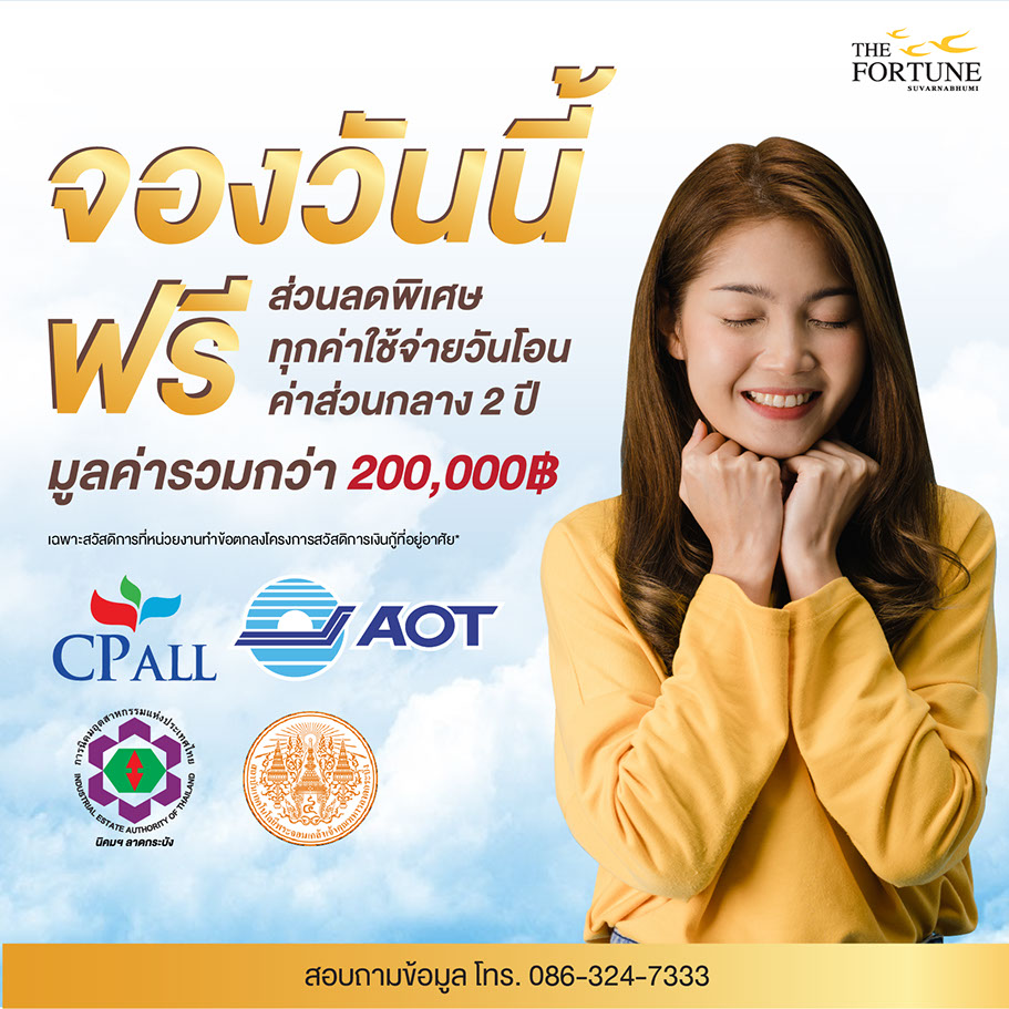 พร้อมรับแคมเปญสุดพิเศษเฉพาะลูกค้าสวัสดิการ จองเพียง 999 บาท ฟรีทุกค่าใช้จ่ายวันโอน มูลค่ารวมกว่า 200,000 บาท